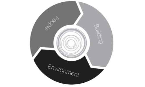 During this stage we will work with you to develop a comprehensive plan. This will be based on our “circular building” process that involves three elements: building, environment and people. We give our clients the freedom to pick and choose which of these they wish to incorporate: